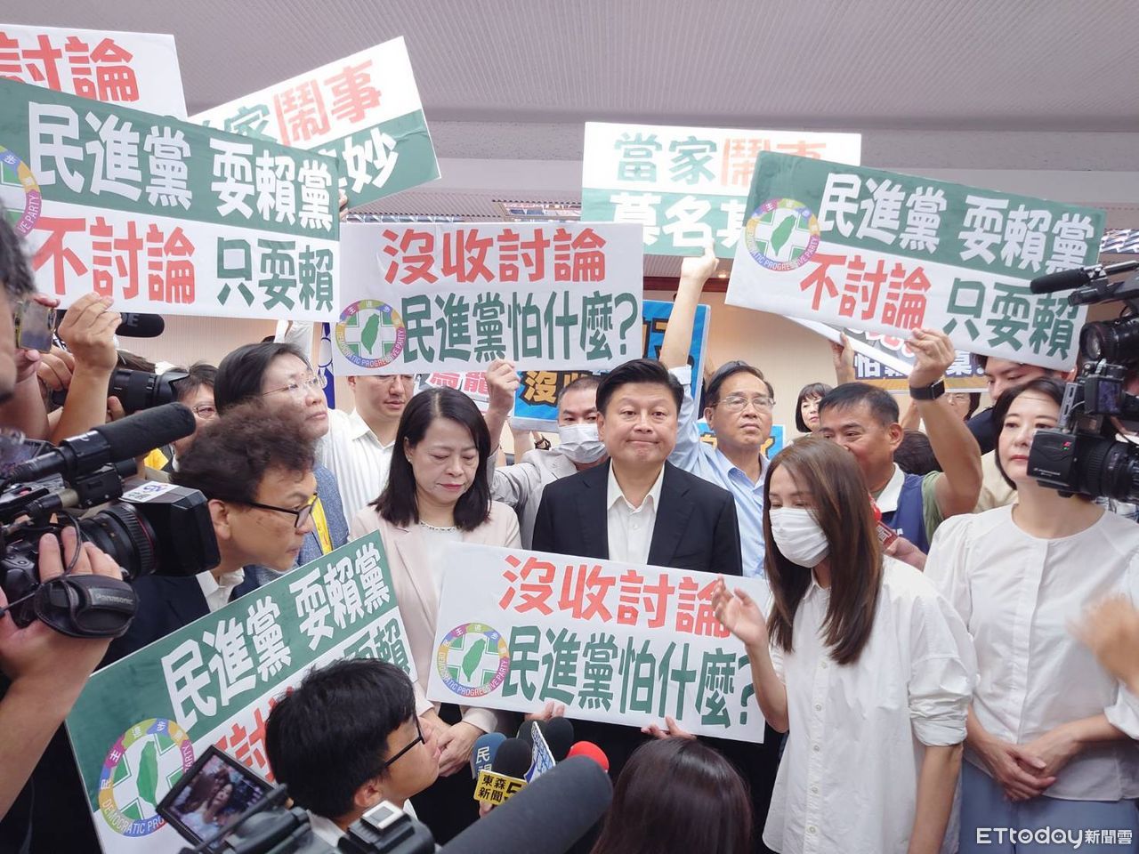 立法院內政委員會今(4日)排審《公職人員選舉罷免法》部分條文修正草案,,未料一早民進黨就霸佔主席台,一路高喊「反對鳥籠罷免 不要沒收民權」長達30分鐘,讓今日抱病的召委高金素梅無法上台主持會議,最後直接扯著喉嚨喊出「會議開始」,但過程中在議事人員報告會議事項時,民進黨立委張宏陸直接搶走議事人員資料,讓雙方氣氛再度升到高點。