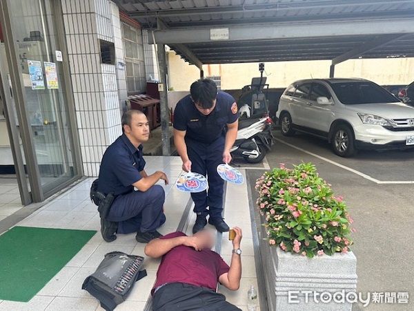 ▲▼員警不斷用扇子幫羅男降溫,同時通知救護人員送醫救治。(圖/大園警分局提供)