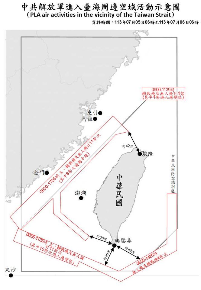 對此,國防部表示,國軍運用任務機、艦及岸置飛彈系統嚴密監控與應處。