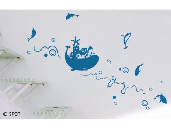 希臘風情的所有元素通通搬到牆面上,一隻隻海豚恣意的跳出海平面,就像我們的天馬行空想像,台灣設計師的原創圖樣,心中任何想法都可依個人喜好自由創作。無痕壁貼 - 希臘海洋風情