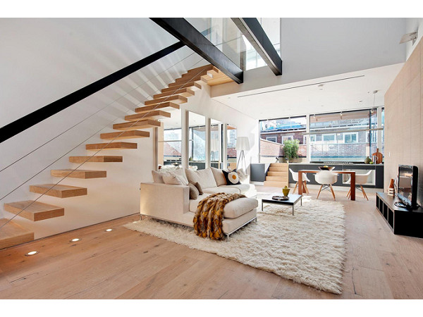這間位於曼哈頓蘇活區的現代複合式住宅,寬敞明亮的空間來自於極佳的採光,以及省略大部分的隔間所打造,站在客廳的每個角落都能清楚將整個空間收進眼底,視覺呈現也相當舒適