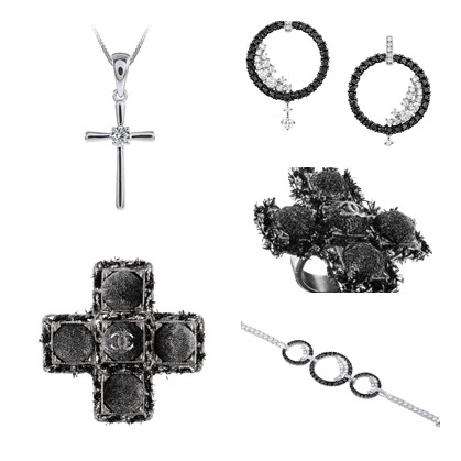 時尚精品香奈兒Chanel在2013/14秋冬新品中,可看到一系列的十字單品,包括:絲絨胸針(NT$14,900)、絲絨墜飾項鍊(NT$16,800)、絲絨戒指(NT$15,900)、絲絨手鐲(NT$46,300),以及搭配十字墜飾的軟呢穿鏈腰帶(NT$114,500)。整個系列採用斜紋軟呢的穿鏈設計,搭配絲絨材質,繁複且華麗,帶有濃厚的金屬搖滾風格,Chanel標誌則暗藏其中,展現低調而華貴的品味。