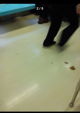 捷運車廂地板上,明顯看出一點一點咖啡色的排泄物痕跡,再看下一張照片,竟然還有更大一坨屎,就這樣從座位一路延伸車門,只見所有乘客避之唯恐不及。照片一PO上網路後,網友你一言我一語的熱烈討論,有人揶揄,北部跟中國大陸無縫接軌了;也有人緩頰,應該是肚子不舒服,忍不住噴出來;更有人猜測,應該是從褲管漏出來的。
