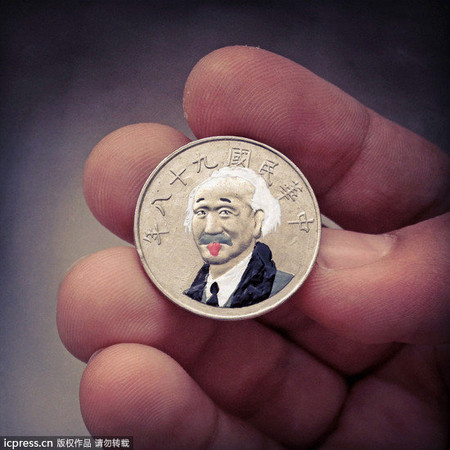 現居德國的巴西籍藝術家安德烈·利維·席爾瓦(Andre Levy Silva)不但酷愛蒐集世界各國的硬幣,更愛在這些硬幣上畫上不同的人物形象,賦予它一個「全新的身分」,有蝙蝠俠、羅賓漢、綠巨人等超級英雄,以及各種神話人物及名人,仔細一看,這些硬幣中也有台灣的10元硬幣──上頭的蔣公留了一頭愛因斯坦式的蓬鬆髮型,鬍子下還有一條俏皮的舌頭,這樣的新形象,你喜歡嗎?【圖集】更多的變裝錢幣
