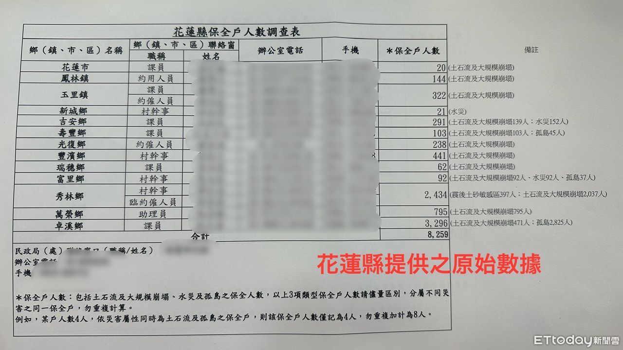 ▲花蓮縣提報內政部的4大災害保全戶撤離人數為8259人,但徐榛蔚報告卻僅提3013人,賴清德因心繫花蓮縣防災狀況,才數次追問徐榛蔚。(圖/記者陳家祥翻攝)