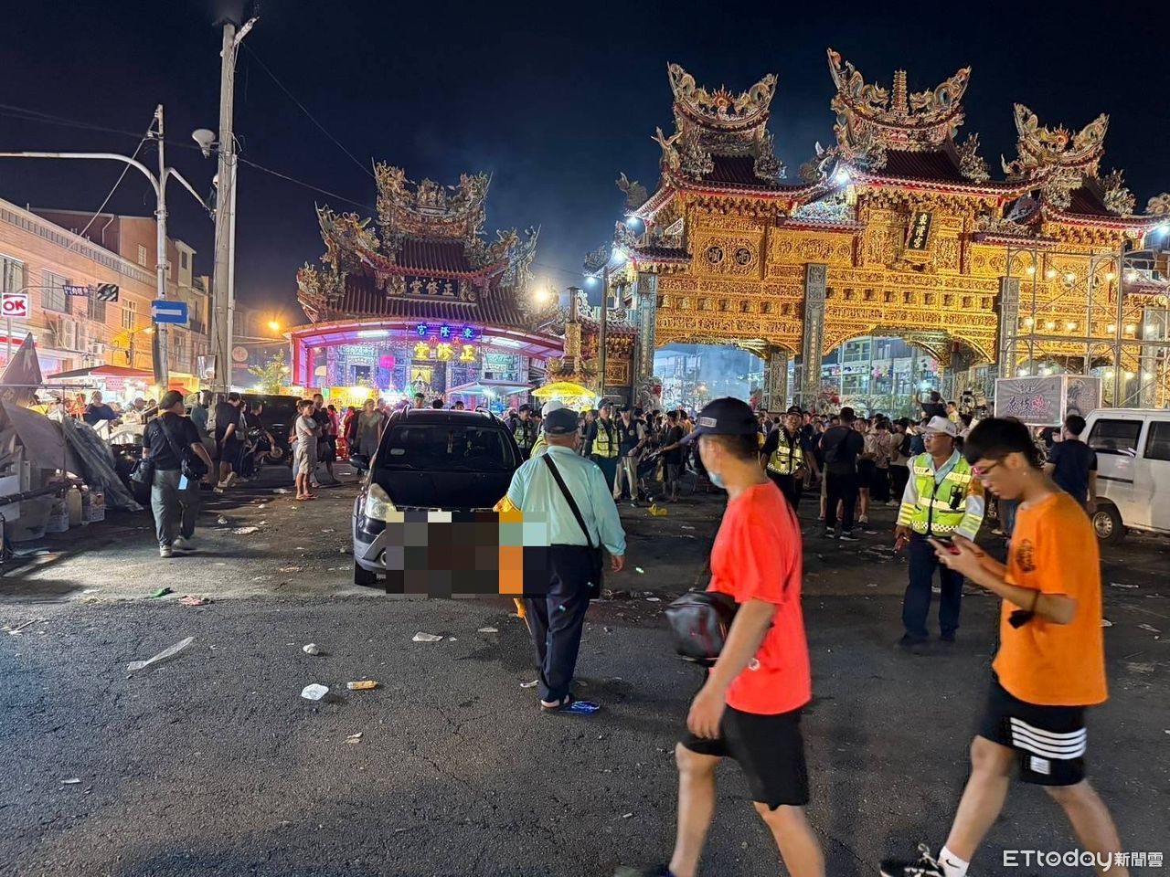 ▲自小客車被信眾合力推離 。(圖/記者陳崑福翻攝)