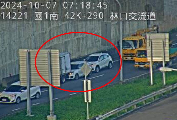 ▲現場畫面。(圖/翻攝高公局網站)記者陳俊宏/綜合報導上班注意!高公局表示,今天7時9分,國道1號北向林口出口,發生2輛自小客車、1輛小貨車追撞占外線事故,回堵6公里,請用路人小心駕駛。