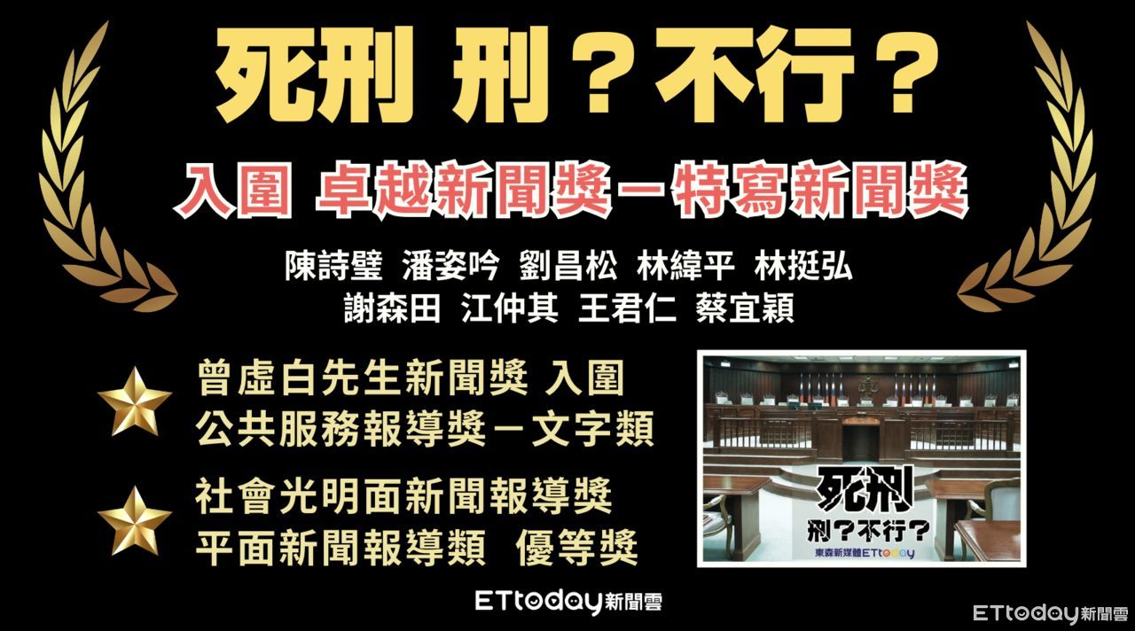 ▲卓越新聞獎基金會於10月8日宣布第23屆卓越新聞獎入圍名單,《東森新媒體ETtoday》專題中心所製作的「死刑 刑?不行?」入圍特寫新聞獎。(圖/專題中心製)