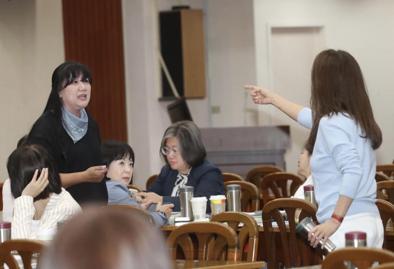 ▲立委伍麗華與高金素梅(背對鏡頭)於立法院財委會,爆發爭執。(圖/翻攝自Facebook/伍麗華)
