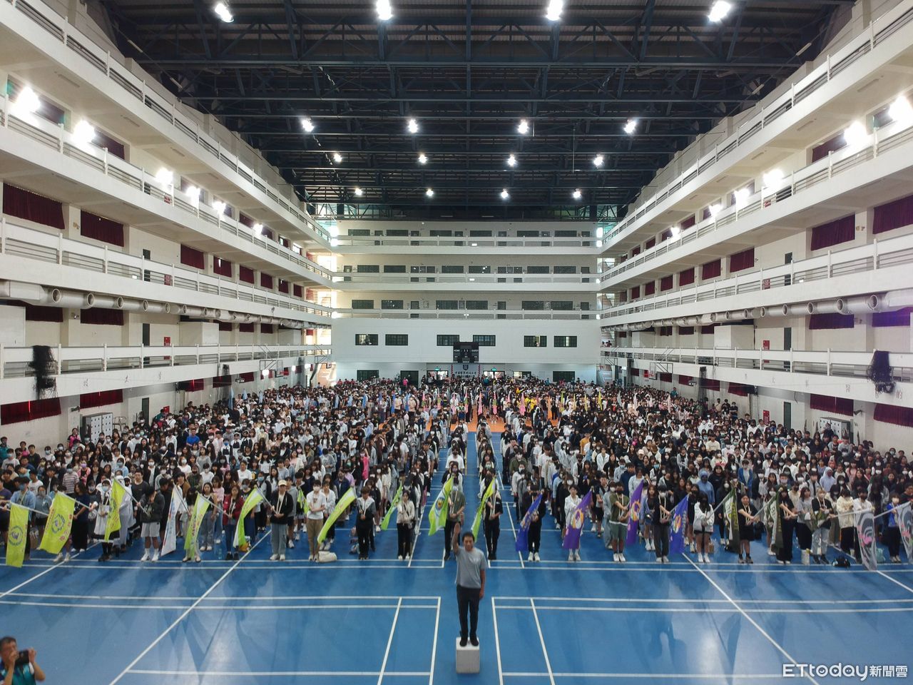 ▲中華醫大56週年校慶運動會首次移師體育館內舉行,國軍弟兄派來大頭娃娃兵為開幕式演跳助興,運動會拔河決賽各隊奮力爭取榮譽,競爭激烈。(圖/記者林東良翻攝,下同)