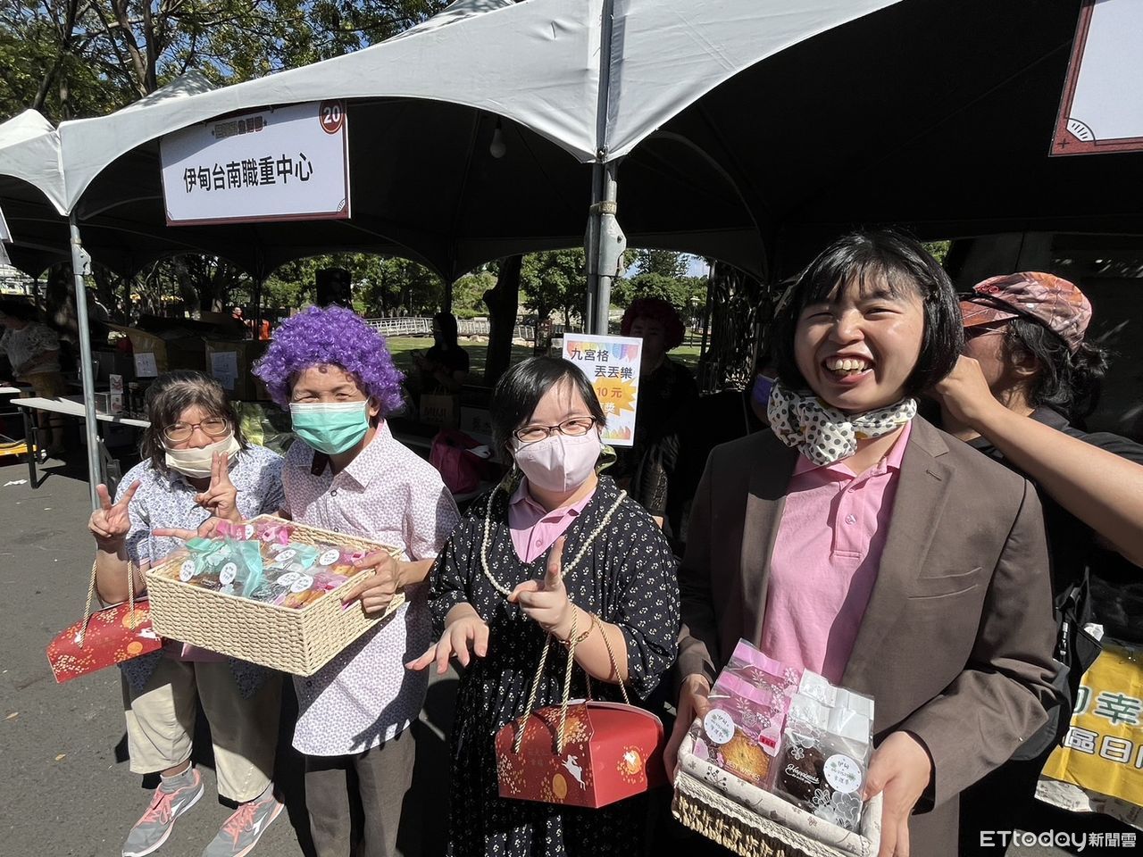 ▲伊甸身障學員于庭(右一),裝扮美麗展露自信笑容。(圖/記者林東良翻攝,下同)
