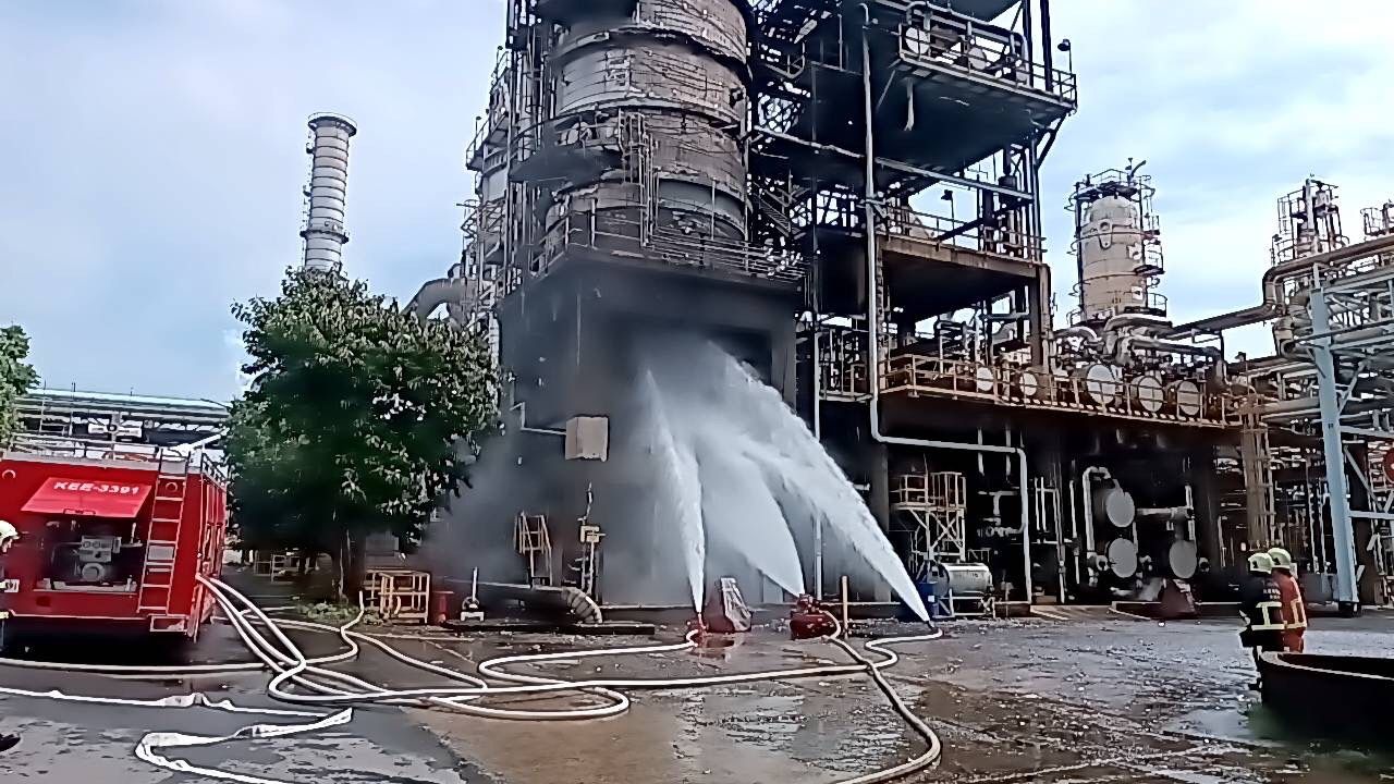 桃園龜山中油煉油廠,今(3)日早上發生火警,消防局獲報前往救災,現場燃燒柏油真空塔第2層內部的柏油,火勢撲滅後在現場協助射水降溫、警戒待命,並調查起火原因。