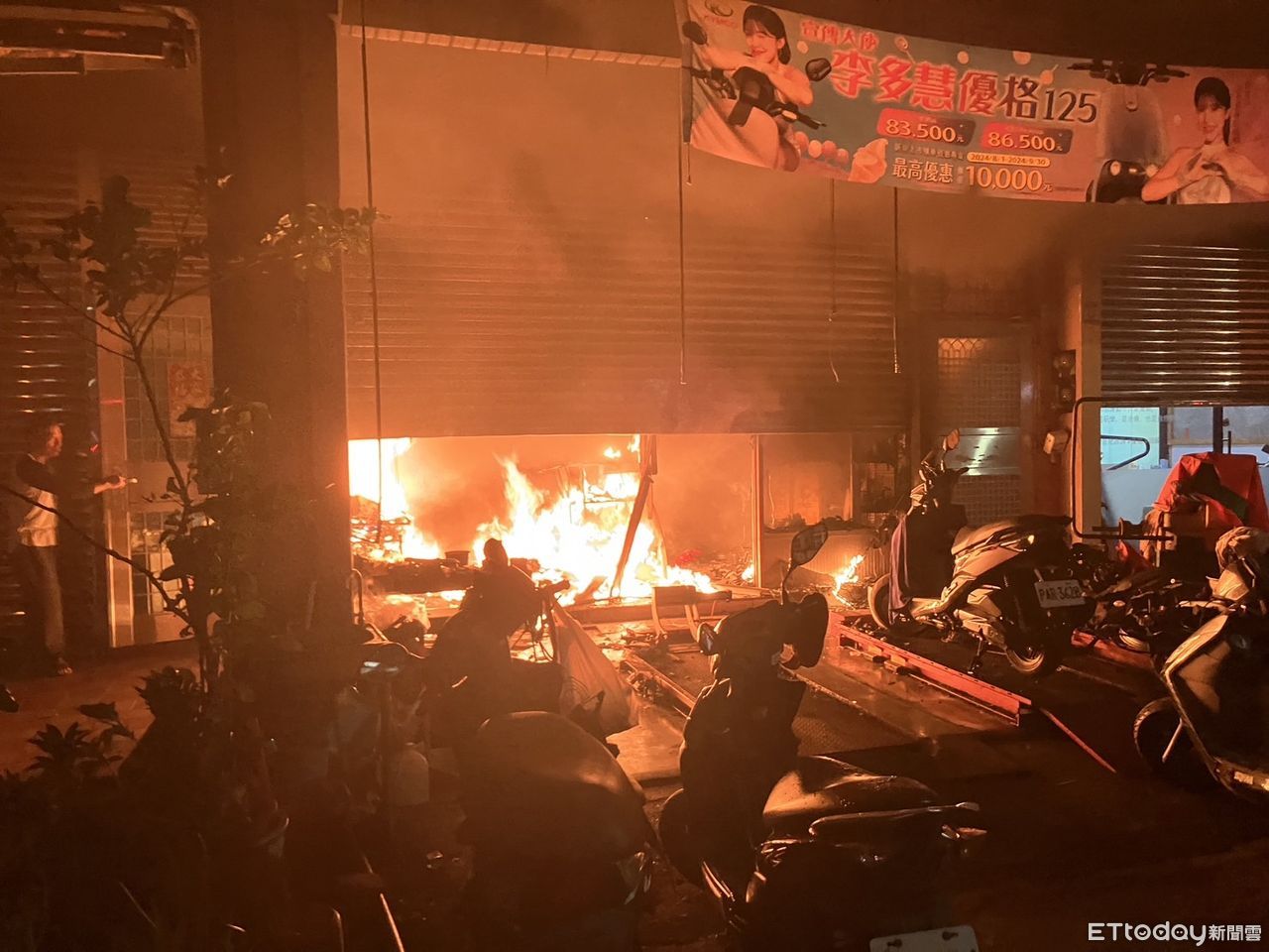 ▲宜蘭市一家機車行陷入火海,一度有3名男子受困。(圖/記者游芳男翻攝,下同)