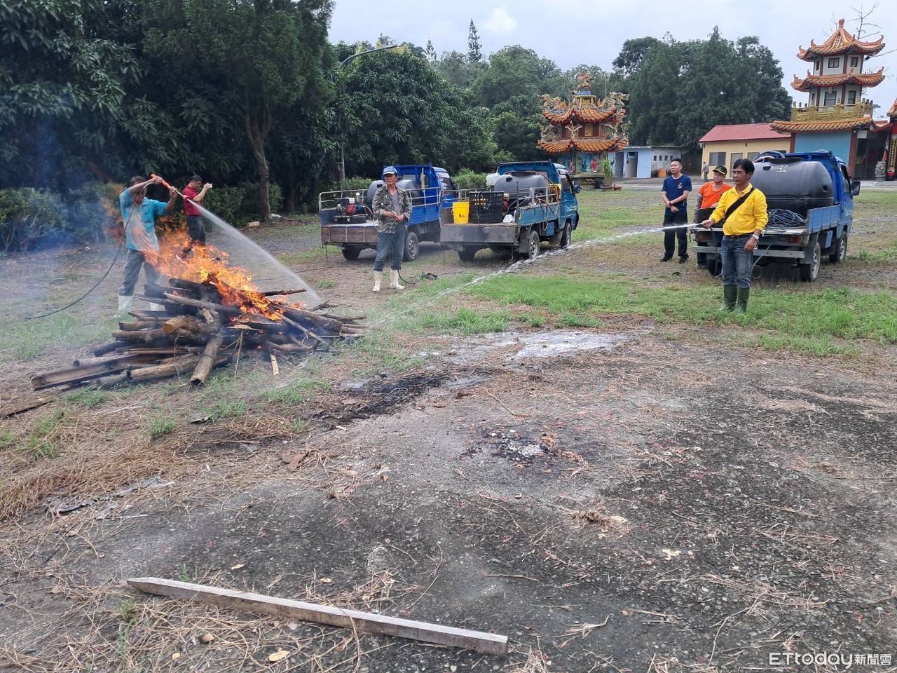 為此,消防局第二大隊特於5日上午10時在南化區關山里耀靈宮廣場前辦理搶救演練,在里長謝國男通報火警後,自救隊成員開著載運水箱與幫浦的農用噴藥車集結,並在消防隊人車到達前,先撲滅零星火勢,展現自主救災能力。另5日特別教導成員施作CPR等救護技能,日後若遇有民眾受傷,可即刻救援,把握急救的黃金時間。