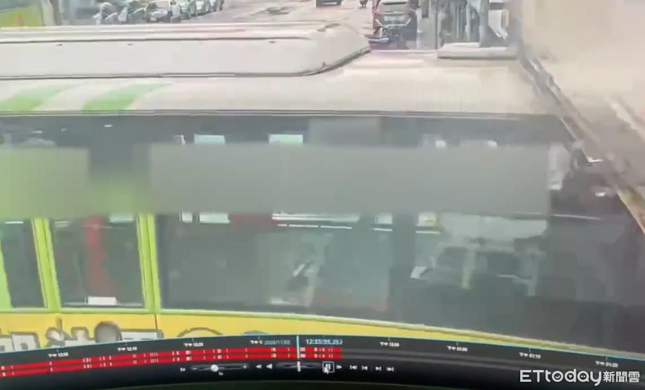 透過畫面可以看到,當時公車前門敞開,直直的就朝騎樓滑過去,且車速還不算慢,直到車頂卡到屋簷車才停下,所幸整起事故僅造成後方店家玻璃受損,沒有造成人員傷亡。