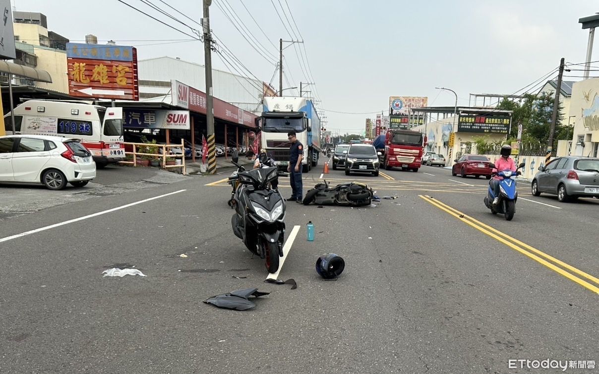 ▲大寮2部機車發生碰撞。(圖/記者吳世龍翻攝)