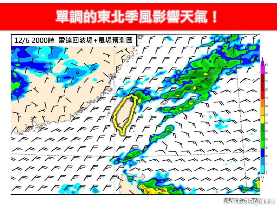 台灣大學大氣科學博士林得恩在臉書粉絲團 「林老師氣象站」表示,今日天氣持續受到東北季風影響,迎風面的北部及東北部地區越晚降雨越明顯,並請留意局部較大雨勢的發生。