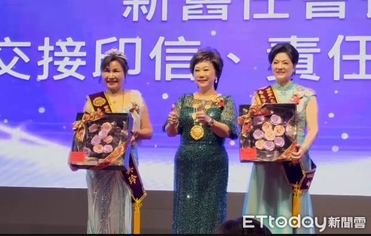 ▲ 嘉義世華婦女企管協會嘉義分會第5屆會長黃麗貞(圖右1)交棒給第6屆會長黃美玲(圖左1),世華總會總會長林淑敏 。(圖/記者翁伊森攝)