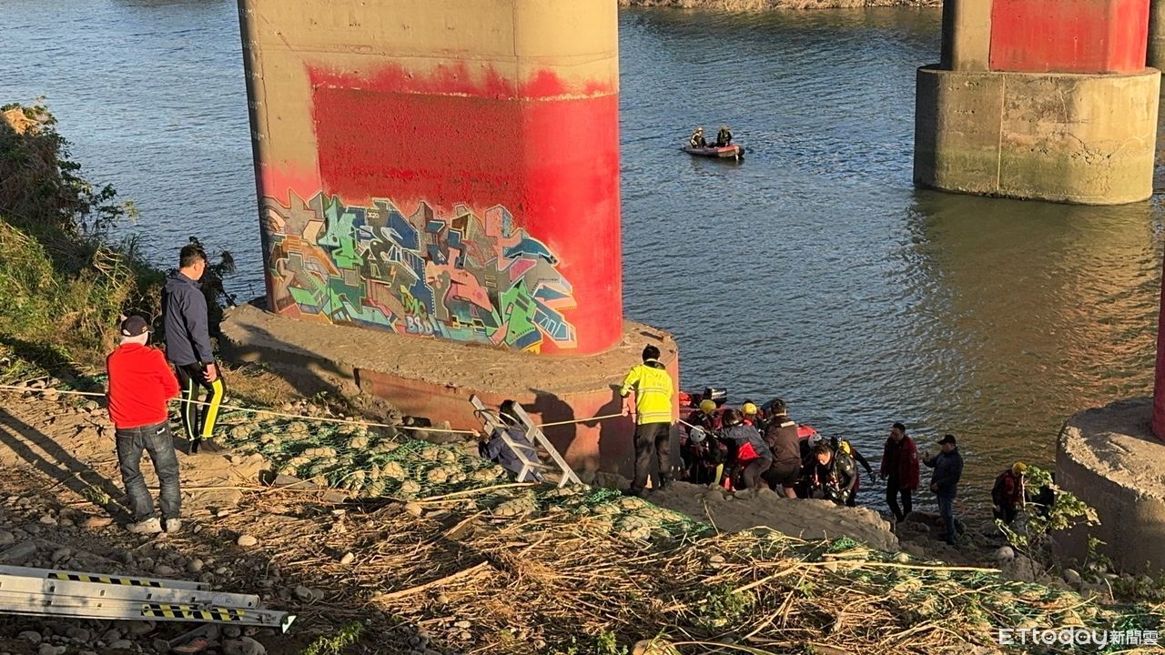 ▲警消在城林橋正下方水中尋獲張男遺體。(圖/記者陳以昇攝)