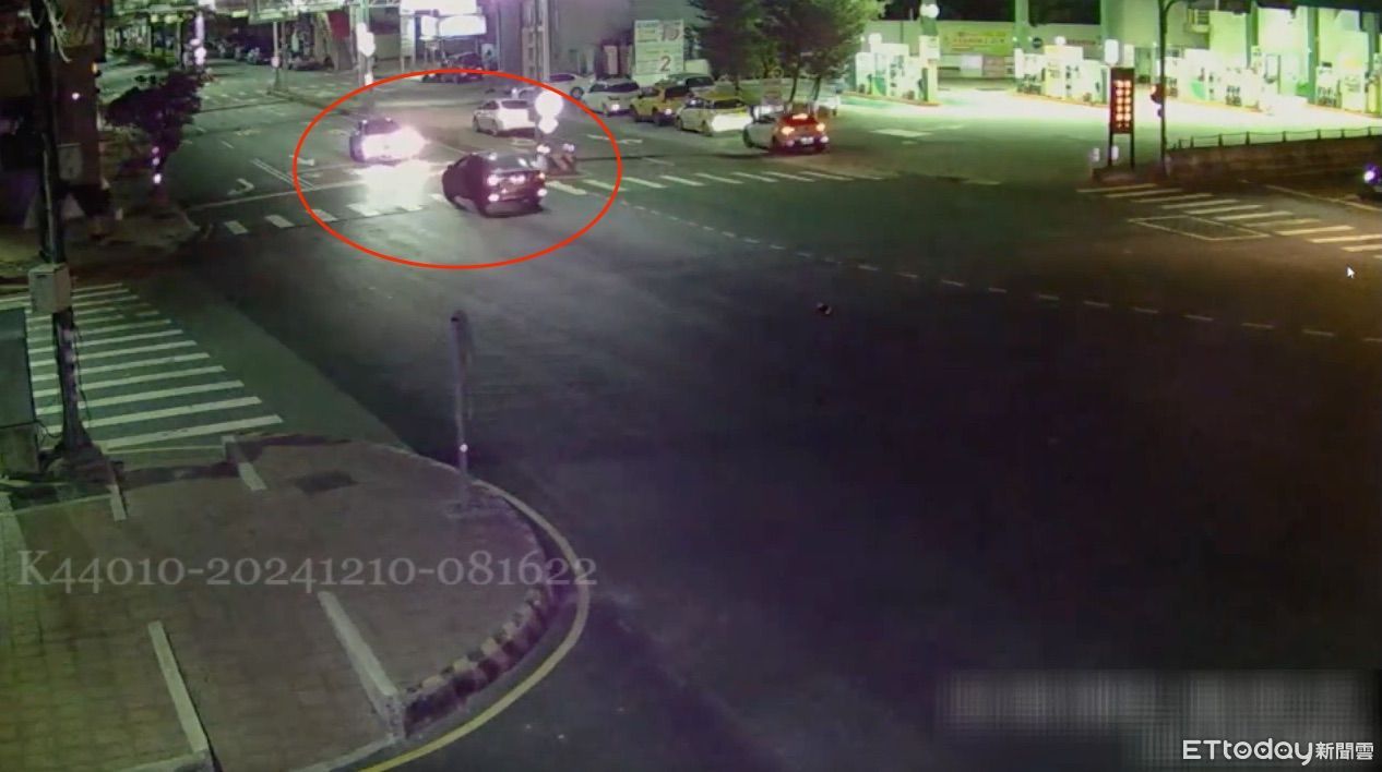 ▲監視器拍下王男酒駕逆向,撞上對向車道的白色BMW 。(圖/記者陳以昇翻攝,下同)