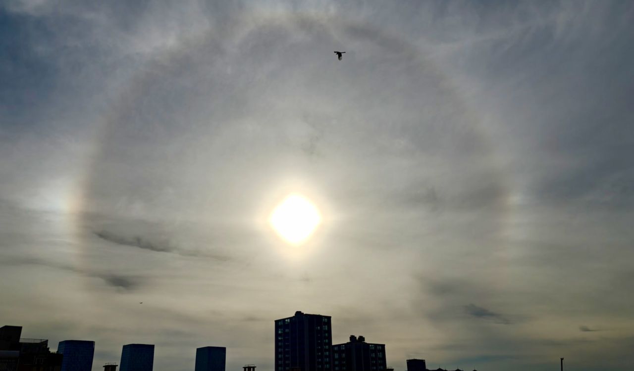 無獨有偶,「幻日」奇景近期頻繁出現在大陸北方城市。黑龍江省遜克縣3日上空便出現雙側幻日景觀。民眾只要一抬頭仰望天空便可發現,彷彿天空中出現三個太陽。