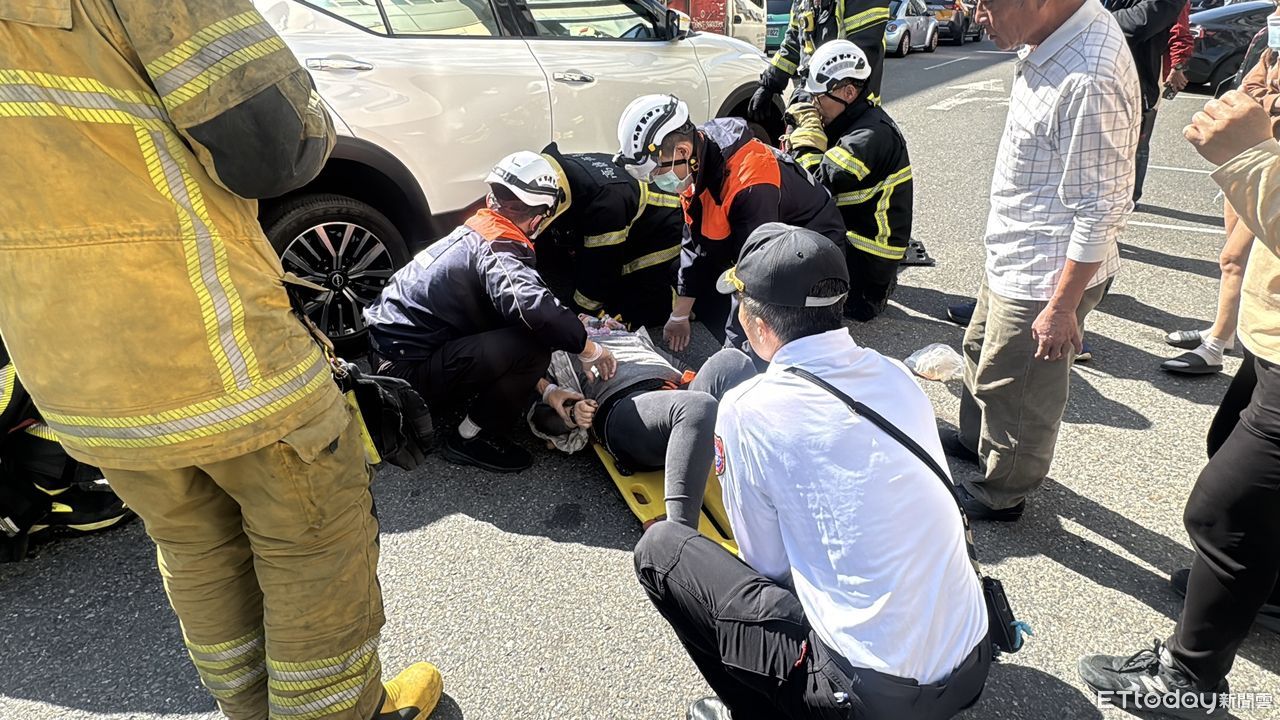 ▲女行人脫困時,意識仍清楚。(圖/記者吳世龍攝)