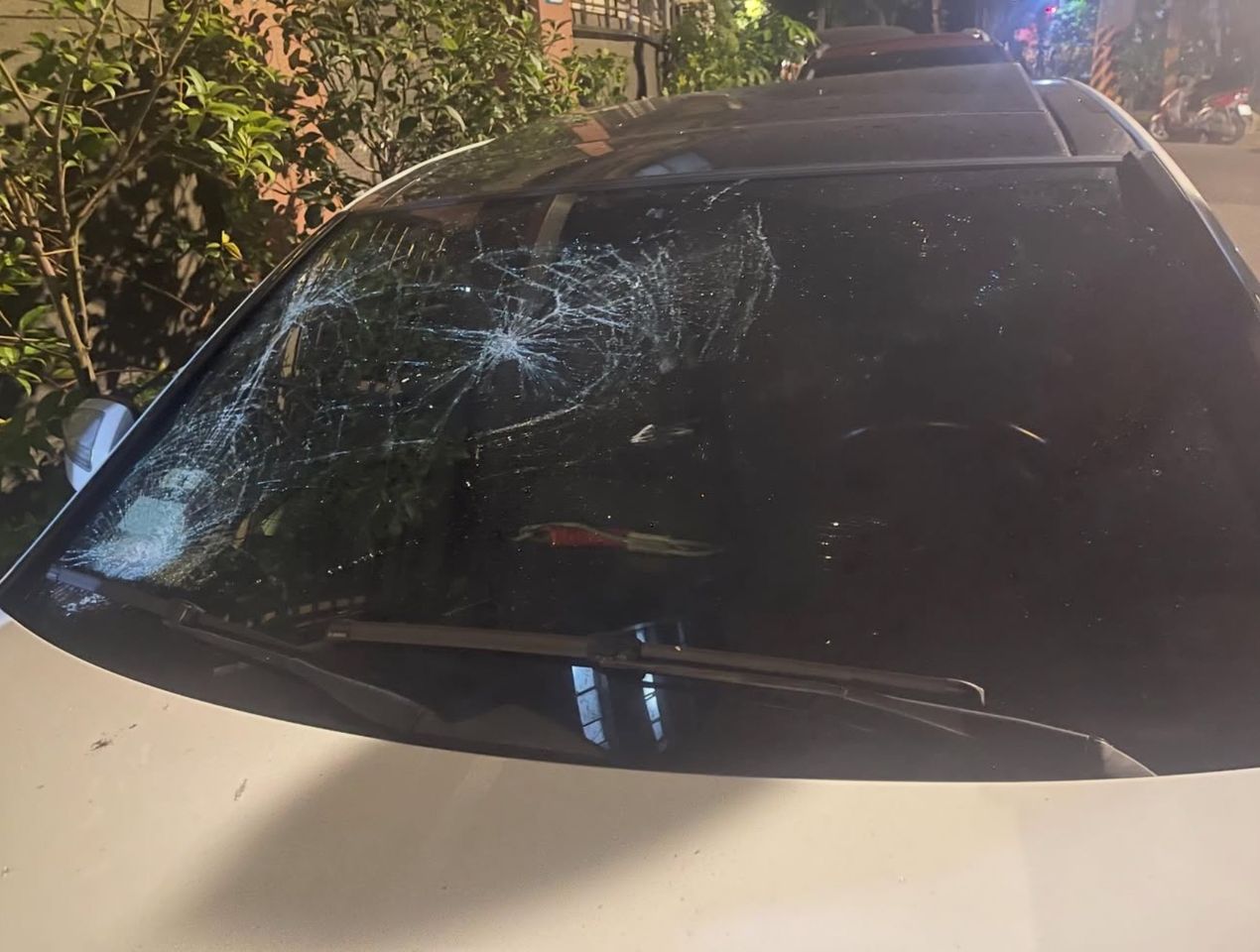 ▲中和區白色賓士車遭喝醉男子砸碎前擋玻璃 。(圖/翻攝當事人Threads)
