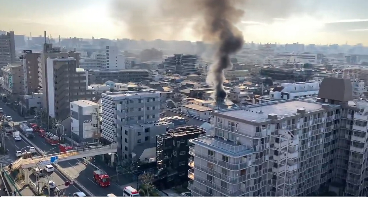 日本東京都大田區今(26)日上午,某住宅密集區域發生火災,火勢從一棟3層樓高的住宅開始燃燒,共有5棟住宅受到火勢影響,目前有3名居民失去聯繫。