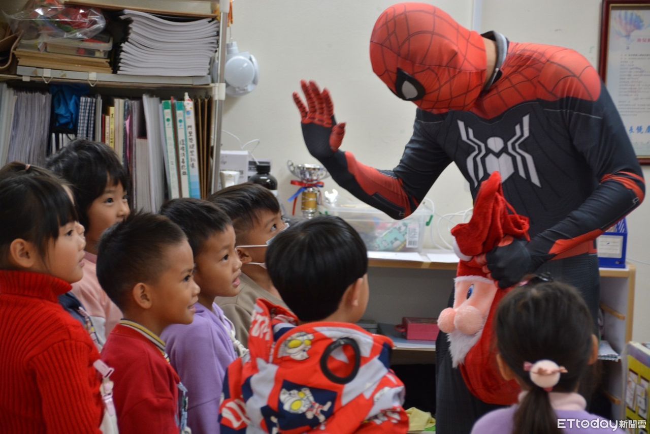 關山鎮德高國小突然出現漫威電影中的超級英雄「蜘蛛人」並頭戴聖誕帽,小朋友看見均睜大雙眼露出不可置信的表情。聖誕老人竟然換人做看看,今年上任家長會長的顏府駐突發奇想裝扮成小朋友喜歡的英雄人物陪伴過節。校方感謝家長會的用心規劃活動,讓小朋友的童年充滿美好的回憶。