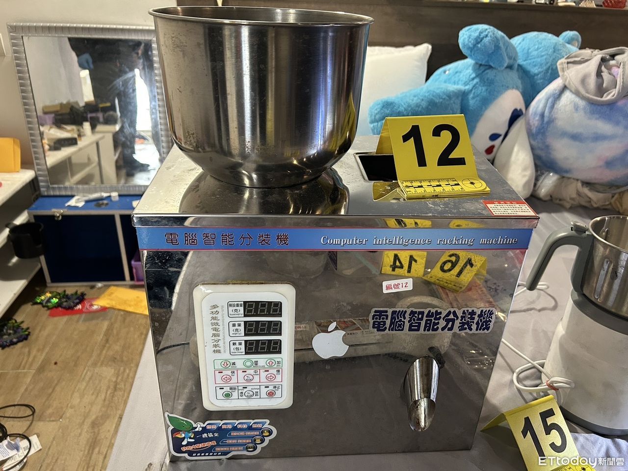 ▲台南市警少年隊偵辦販毒案,循線在安平區查獲綽號「哈哈姐」AI毒品分裝場,查獲大型AI智能毒品分裝設備,起獲各式毒品一批。(圖/記者林東良翻攝,下同)