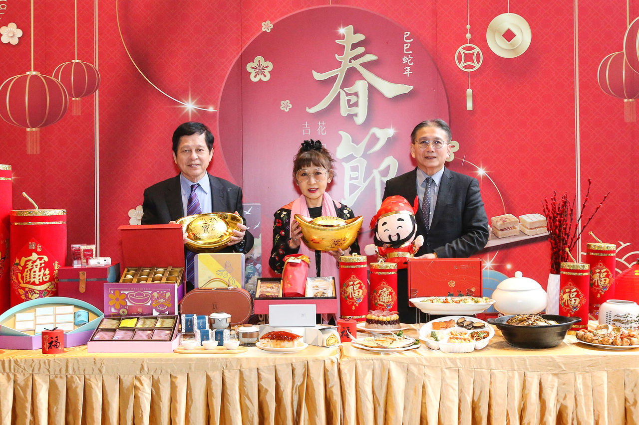 ▲遠東百貨徐雪芳總經理(中)與林彰豐營運長(左)、陳佑任協理嚴選2025春節禮品專刊,年菜和伴手禮都是優質選。