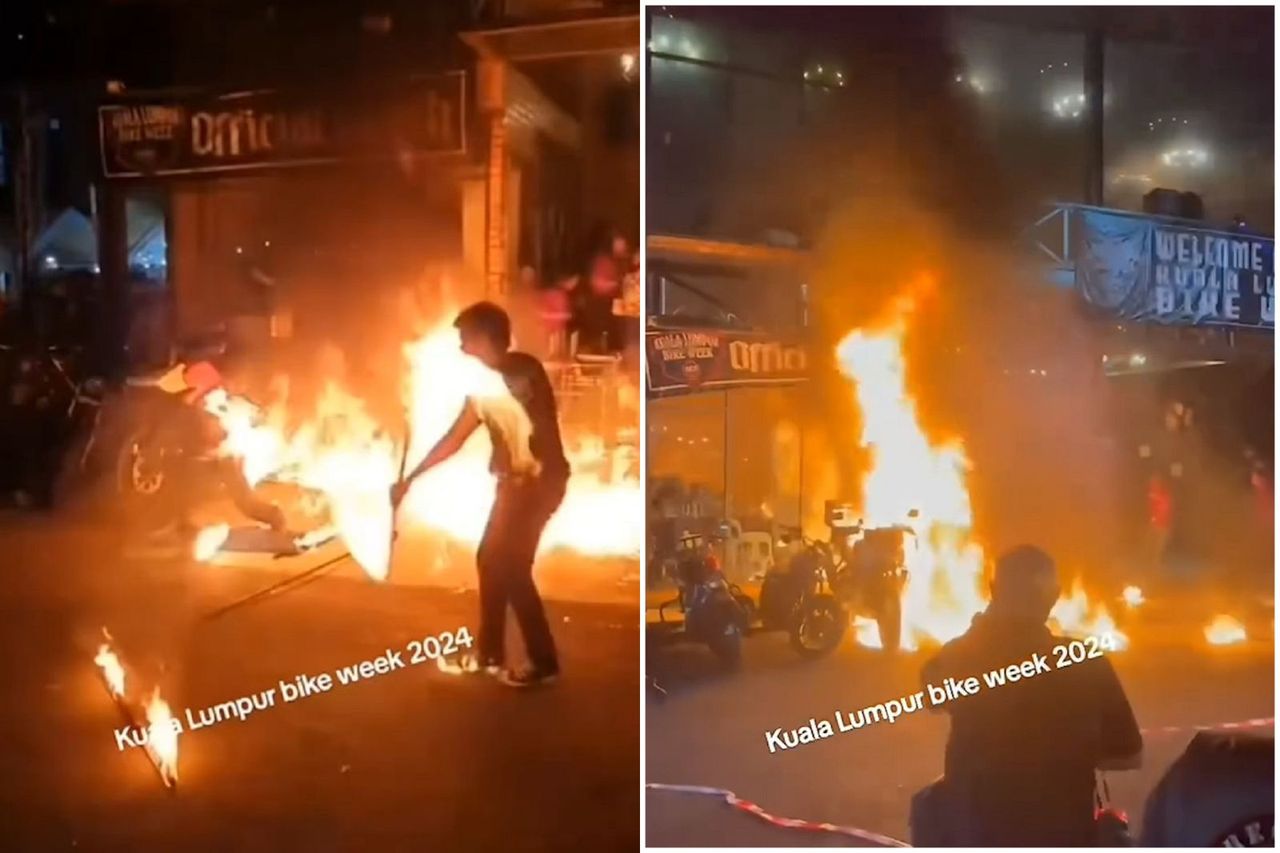 馬來西亞吉隆坡在本月21日舉辦一場重機展示活動,現場也請來舞者跳火舞助興。但火舞火苗不慎噴到重機,接著引發重機連環燒,就連舞者身上也著火,現場狀況相當駭人。