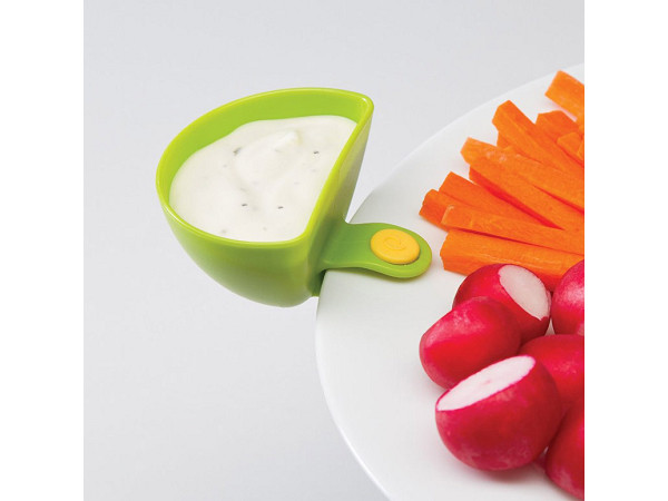 Progressive團隊所開發的Dip Clips醬碟,有著一個趣味的設計,多出的夾子功能,可將醬碟盒夾在一般的平面盤子上,不僅方便沾取醬料使用,也不會再造成醬料沾染到其他食物。