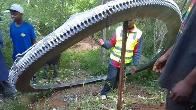 ▲重達500公斤的金屬環落入肯亞村莊,初步研判是一枚火箭的分離環。(圖/翻攝X,下同。)