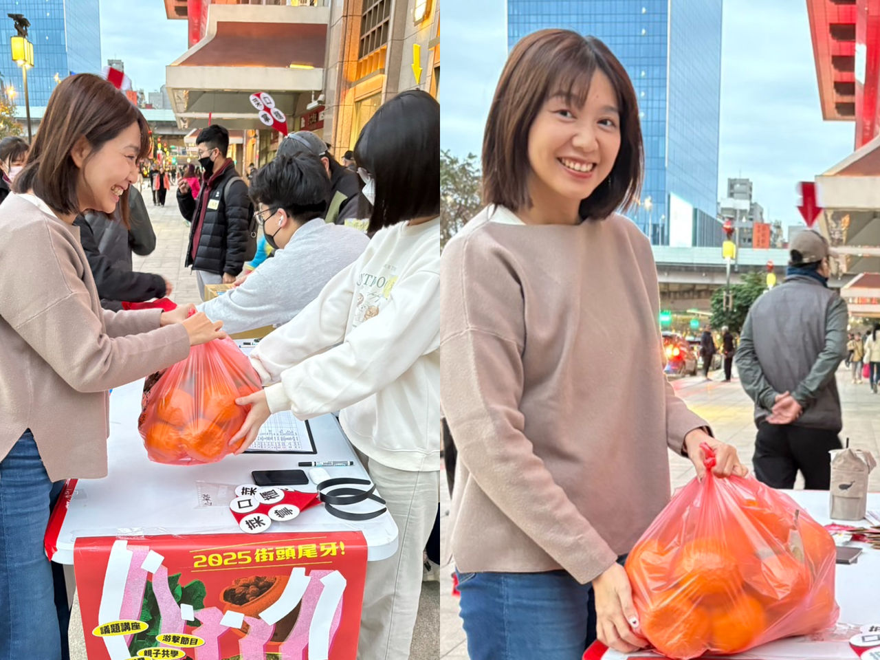 張雅琳指出,要用一大鍋的白菜滷,要準備一大箱的青菜,還有絞肉跟很多的料,到煮好通常都要花一整天的時間,雖然自己現在是立委,有很多行程要跑,沒時間像之前一樣去煮白菜滷,但她跟孩子還是想要繼續幫助無家者,因此今年就改送應景的水果橘子給大家,「就比較可惜啦」。