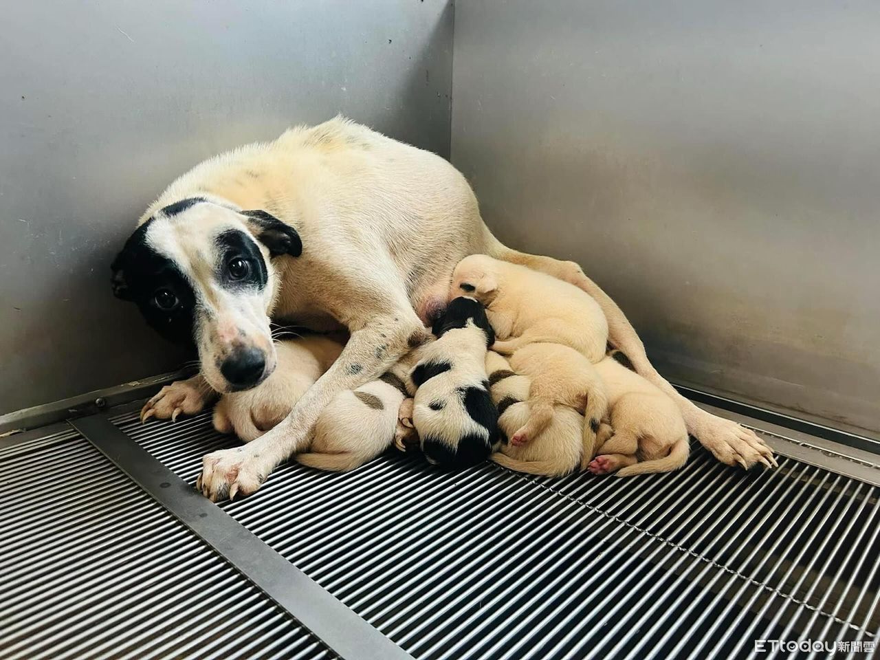 動保處事後上門,從中救出32隻狗狗,其中有4隻交由中途送養,另28隻送往收容所,而其中還包含母帶子乳牛汪一家9口,幼犬們才1個半月大左右,媽媽面對人時則非常緊張,總是害怕地縮在角落發抖,連正眼都不敢對視,深怕自己會被人類宰殺,而狗寶寶們就趴在身邊喝奶。