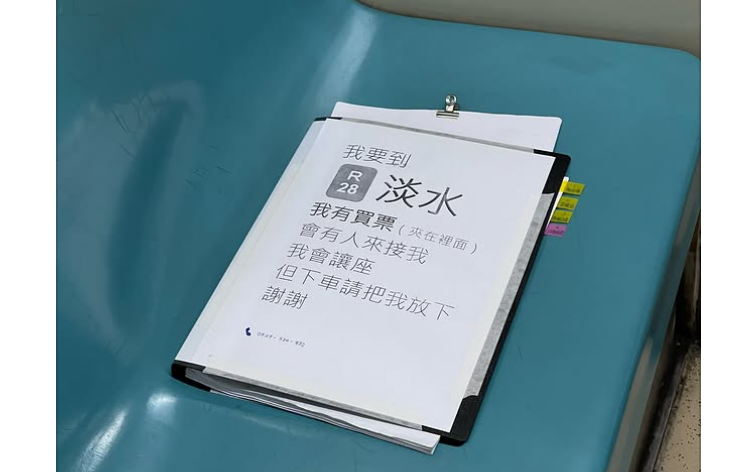 該名網友於社群平台Threads發文問「有人有看過這東西嘛,挺好奇他主人是誰?」並附上照片,可看到一個文件夾乖乖坐在捷運座位上,上面寫著「我要到淡水,我有買票(夾在裡面),會有人來接我,我會讓座,但下車請把我放下,謝謝」。