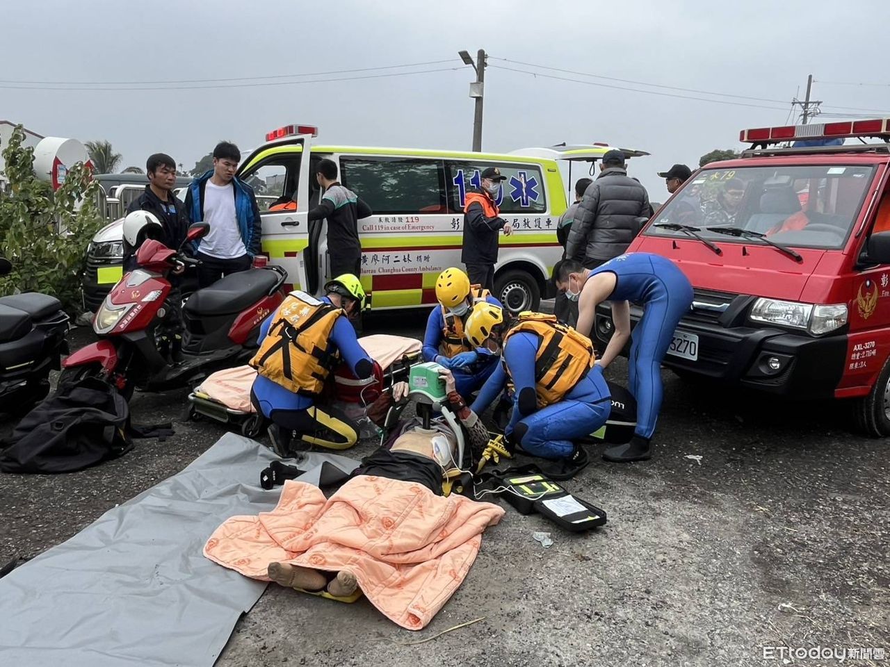 警消指出,79歲許女今日上午6時48分外出後失蹤,疑似落水地點在八堡二圳裕民陸橋下,家屬於下游十五路民國橋水門處尋獲其拖鞋。消防獲報後隨即出動3輛消防車、1輛救護車、4輛勤務車、2台橡皮艇、2台空拍機,並由15名消防人員及10名義消人員前往救援。