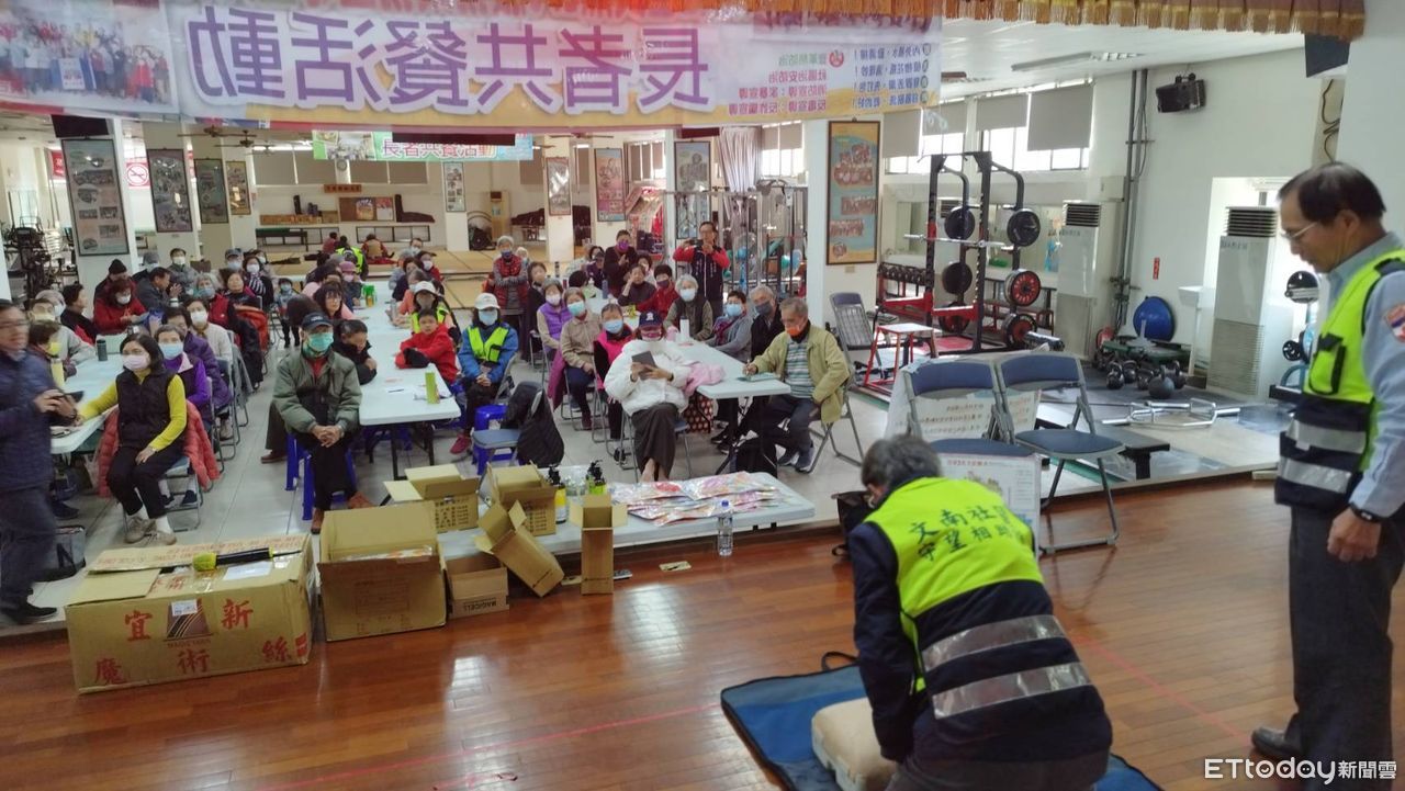 ▲台南市南區文南里5日於文南里活動中心,辦理春節元宵防火防災防詐騙敬老宣導,台南市消防局第七大隊德興分隊應邀到場進行防火防災暨CPR宣導。(圖/記者林東良翻攝,下同)