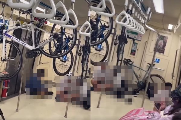 一位民眾在臉書社團「重機車友❘各區路況天氣、資訊分享中心」張貼影片,分享5日在北捷車廂內發生的事,當時多位自行車車友在車廂內,有部分人直接將自行車掛在吊環的鐵桿上,畫面相當離譜。