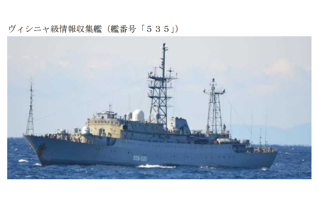 日本放送協會(NHK)報導,根據防衛省統合幕僚監部(類似國防部參謀本部)10日公布的資訊,海上自衛隊確認一艘俄國海軍情蒐艦(情報蒐集艦)本月1日出現在沖繩本島東南方約50公里的太平洋且向南航行。