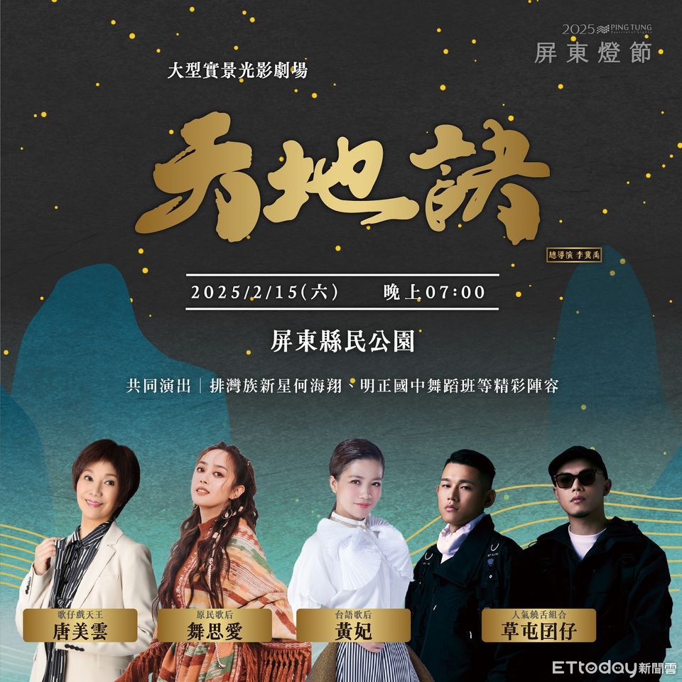 縣長周春米表示,自2022年屏東燈節開辦以來,每年皆委託專業團隊製作專屬屏東故事的戲劇,已成為民眾引頸期盼的年度演出。今年閉幕大戲「天地訣」邀請國寶級歌仔戲天王唐美雲、兩位金曲歌后黃妃、舞思愛以及人氣團體草屯囝仔攜手演出,還有屏東排灣族的戲劇新星何海翔、獲獎無數的明正國中舞蹈班等陣容,打造傳統與流行音樂的大型實景光影劇場。