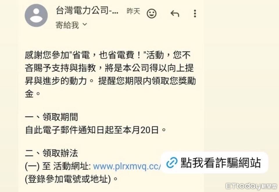 ▲金門人收到詐團寄送假台電的網站 。(圖/記者林名揚翻攝)