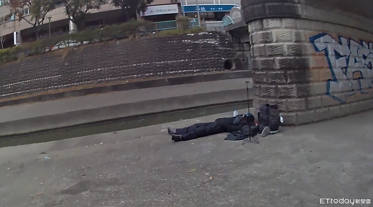 台中市警一分局公益派出所員警陳凱貿、洪舜麟獲報立即趕赴現場,從男子身旁裝備齊全研判,應該是暫時就地休息,果然搖醒後,得到證實。