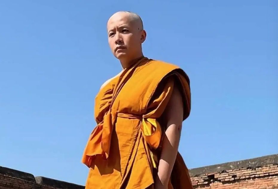 疑似近年演藝事業不太順遂,又與交往六年女友分手後一直單身,透過短期出家讓自己累積福報。