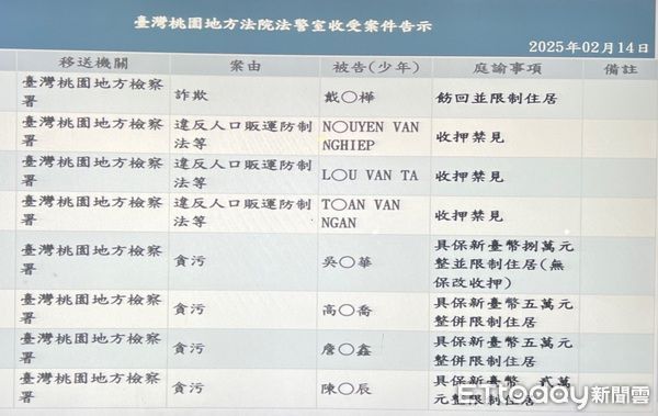 桃園檢方依違反人口販運防制法將阮男、陳男、劉男3人提起公訴,分別求處3年、2年、2年徒刑;另外,就被告陳、劉2男涉犯意圖販賣及持有毒品求處7年有期徒刑,阮男等3人仍遭收押禁見。