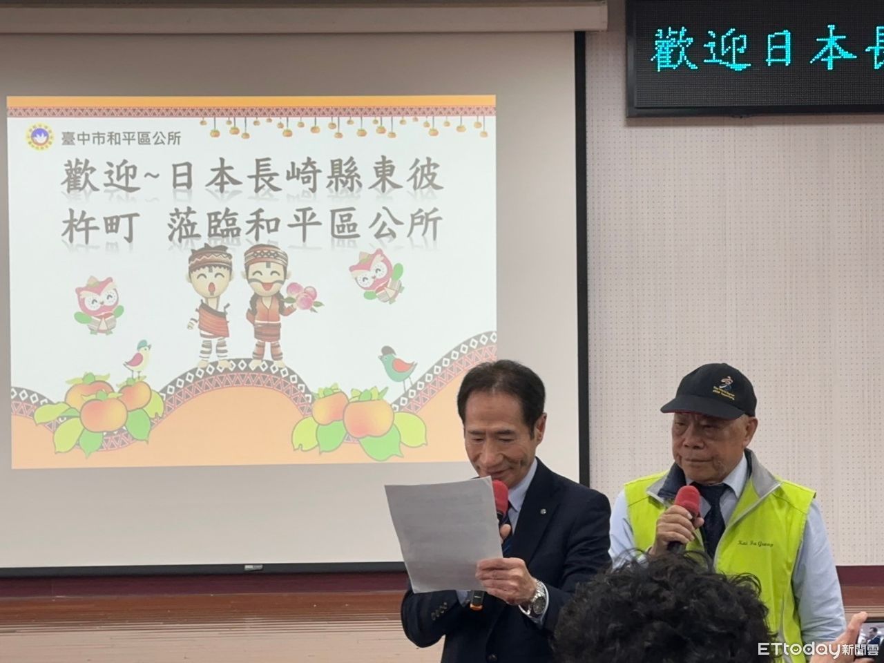 ▲▼日本長崎縣與台中市和平區進行台日茶葉文化交流,雙方互贈茶品,東佊杵町町長岡田伊一朗稱讚梨山茶好喝。(圖/記者李陳信得翻攝,下同)