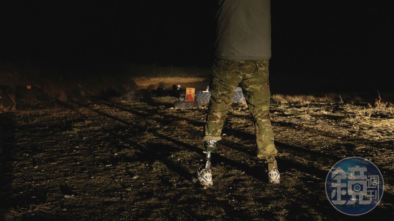 ▲代號「大黃蜂」的施梅,是烏克蘭國防部情報總局(GUR)的特工,正進行夜間射擊訓練。他從2014年開始擔任志願軍,曾是海軍陸戰隊員,2022年在一次偵查任務中因地雷失去一條腿。復健後,他重返GUR的現役崗位。