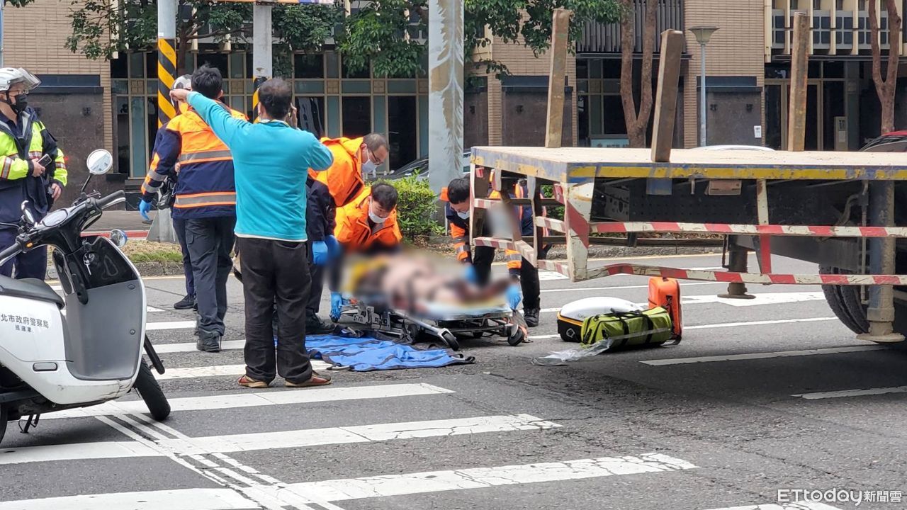 台北市中山區松江路農安街口19日下午發生一起車禍!一輛吊臂貨車因不明原因與行人發生擦撞,行人差點遭輾,一旁行人見狀趕緊報警。警消獲報到場發現,年約80歲的老婦人倒地,左腿、骨盆骨折,意識不清送往醫院急救,至於車禍詳細原因警方正進一步調查。