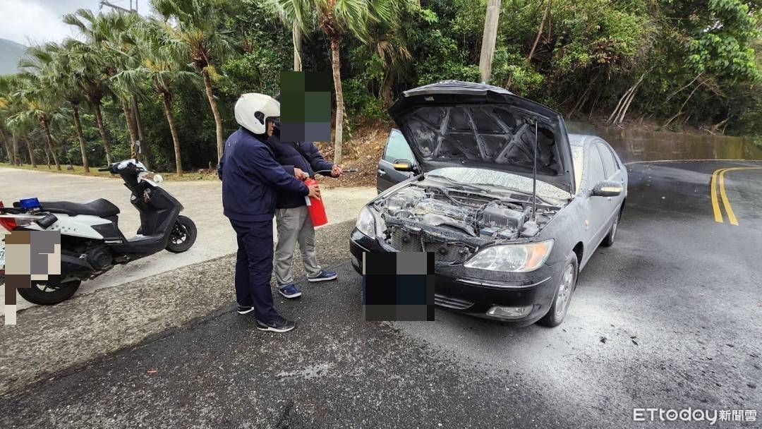 王姓民眾欲前往達仁鄉安朔村拜訪朋友,行經新化村入口處時,車頭突然冒煙,王男趕緊停車查看,並立即報警協助。員警到達現場後,使用滅火器朝車輛噴灑降溫,順利撲滅火勢,過程中無任何人員受傷,成功防止一場災難的發生。